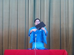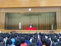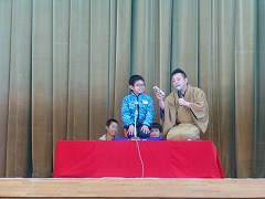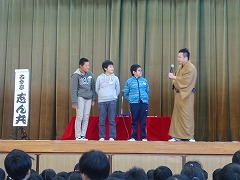 3名の落語家さんが幡羅小にいらっしゃいました。