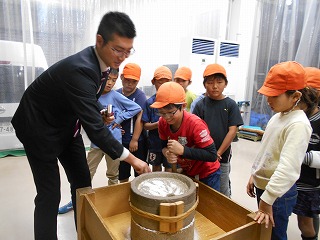史跡の博物館では、昔の道具を使って昔体験をさせてもらいました。