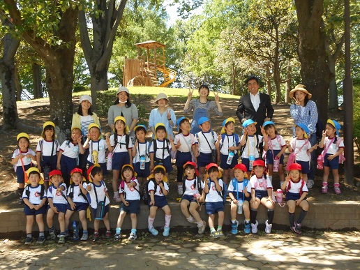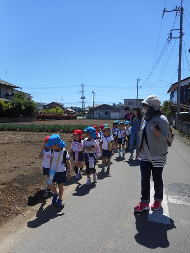 年長さんと年中さんで手をつないで仲良く歩きました。