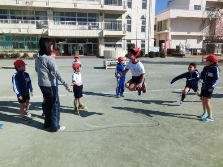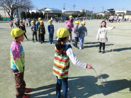 校内長縄大会に向けて、2年生も、がんばって練習をしています。どのクラスも、大きな声で数えながら楽しく練習しています。縄を回すのも跳ぶのもだんだん上手になってきました。もっともっとたくさん跳べるようになるといいな。