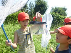 捕まえた虫は、草や葉っぱなどを入れて、世話をし、