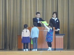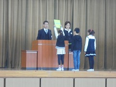 各クラスの代表が修了証を校長先生から受け取りました。