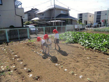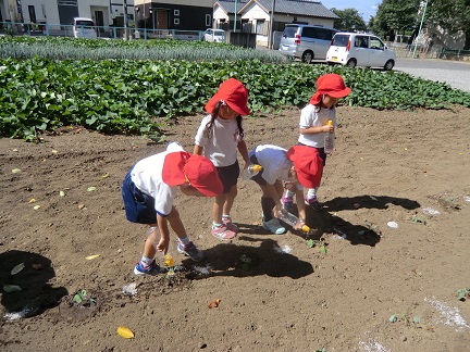 幼稚園の畑にブロッコリーの苗を植えました。