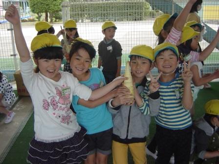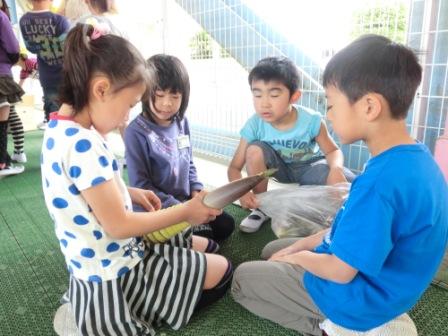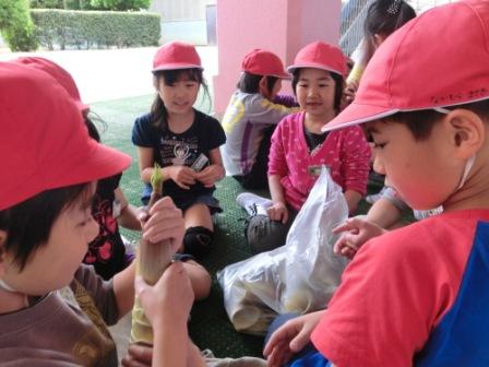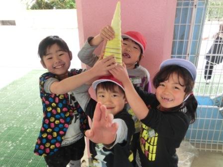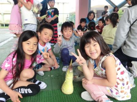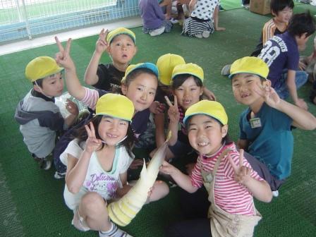 明日の給食は、タケノコごはんです。みんなで皮むきをしました。