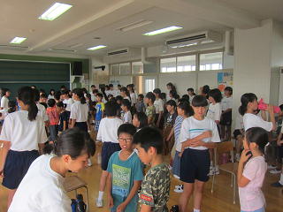 幡羅中学校へ行き、常盤小学校の4年生と一緒に合唱部の練習を見せていただきました。