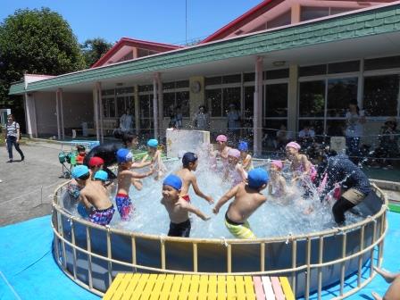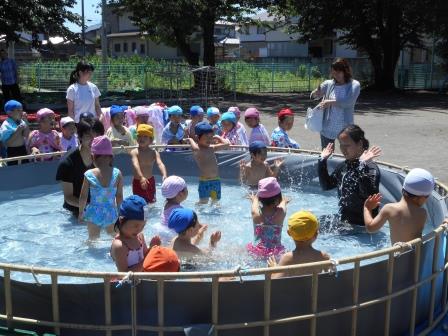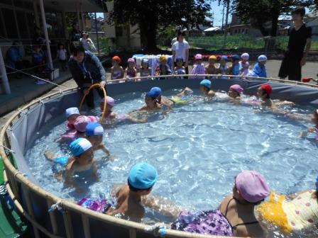 保育参観では子どもたちが元気にプールで遊んでいる姿を見てもらうことができました。