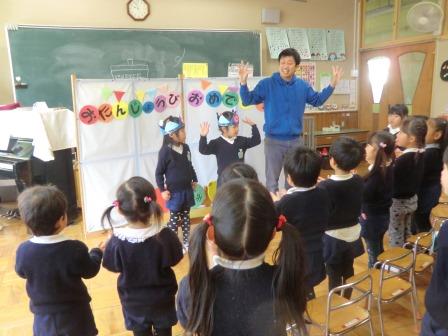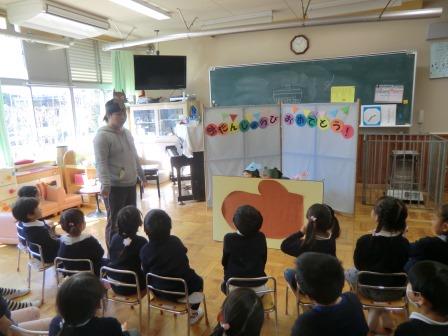 みんなから「カレンダーマーチ」の歌のプレゼントをして、2人の女の子と職員とで「