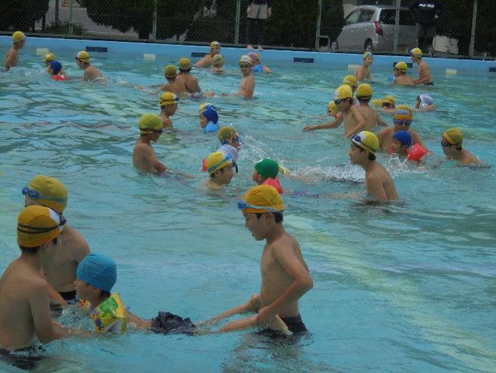 本日の3校時に6年生が幡羅幼稚園生と一緒に水泳学習をしました。6年生が優しく声をかけている姿がたくさん見られました。