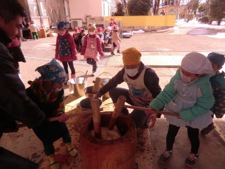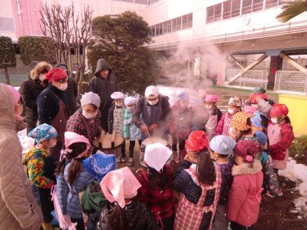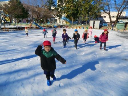 雪のため、18日(月)は臨時休園となりましたが、翌日元気いっぱい登園してきた子どもたち。