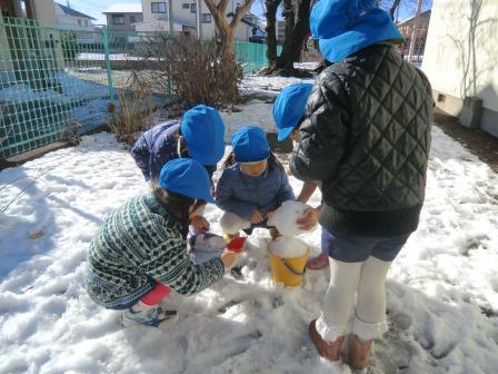 雪玉を作って投げたり、雪だるまを作ったりみんな大興奮でした!