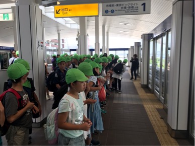 ゆりかもめに乗って豊洲市場見学です。