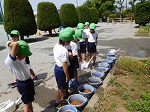 今日はJA深谷の方に来ていただき、バケツ稲の土作り、種植えを行いました。JA深谷の方々、ありがとうございました。