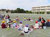 16日(水)は、子供たちが楽しみにしていたなかよしはたらっ子給食です。なかよしはたらっ子給食とは、縦割りグループで、校庭で給食を食べる取組です。からの弁当箱に給食をつめこんで、運動会で仲良くなった縦割りの色ごとに集まって、おいしくいただきました。天気も晴れていて、風もなくとても過ごしやすかったです。給食の後には、グループで6年生が中心となって遊びました。まるでピクニックのようで、とても子供たちも喜んでいました。