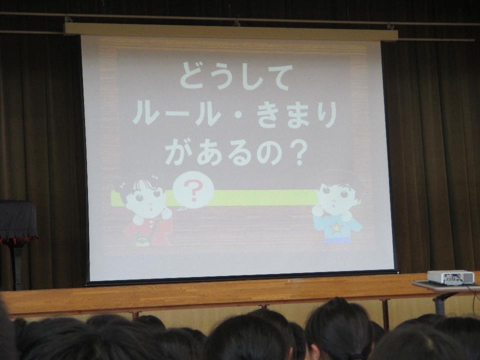 非行防止指導班「あおぞら」様を招いて、非行防止教室が行われました。犯罪や薬物についてもお話いただき、「やってはいけないこと」がよくわかりました。