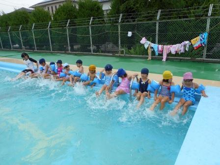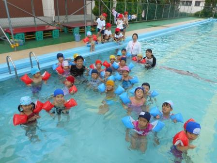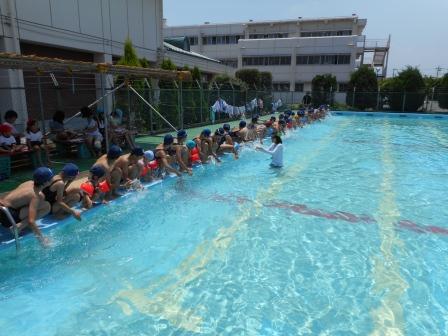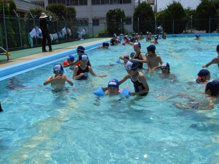 小学校の大きなプールに最初は不安そうな子どもたちでしたが、6年生のお兄さん・お姉さんが優しく声を掛けてくれたり、手を繋いでくれたので、とても楽しめました!
