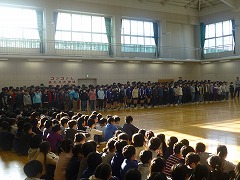 リズムのよさを感じながら、全校で声を合わせて