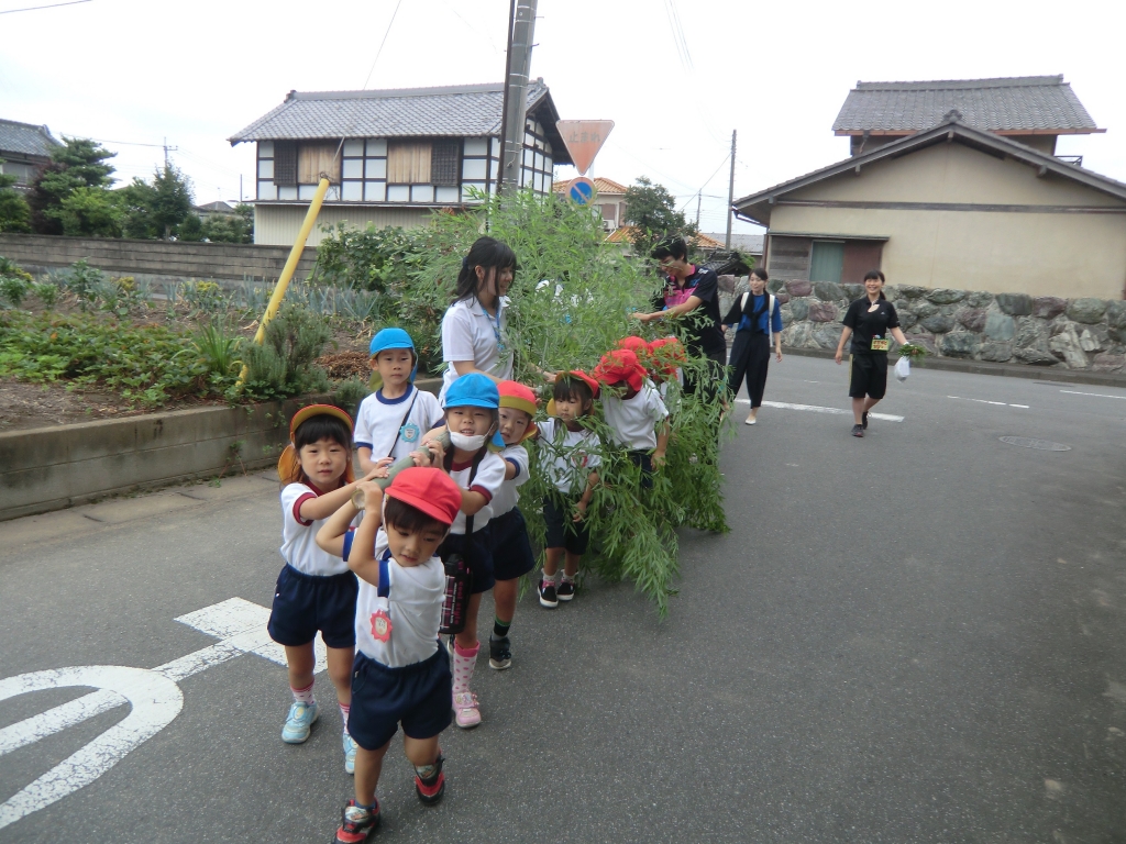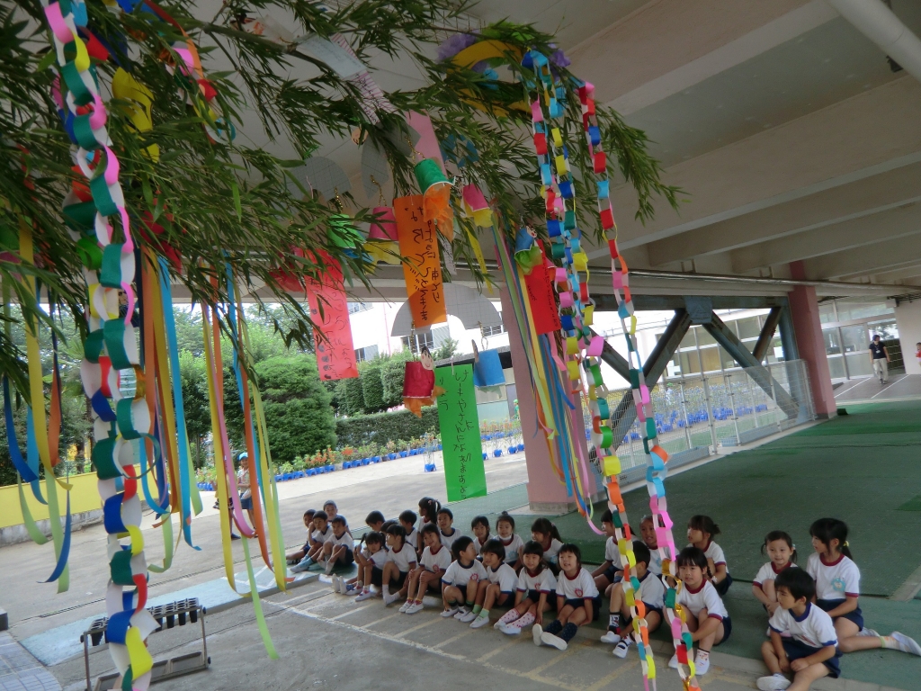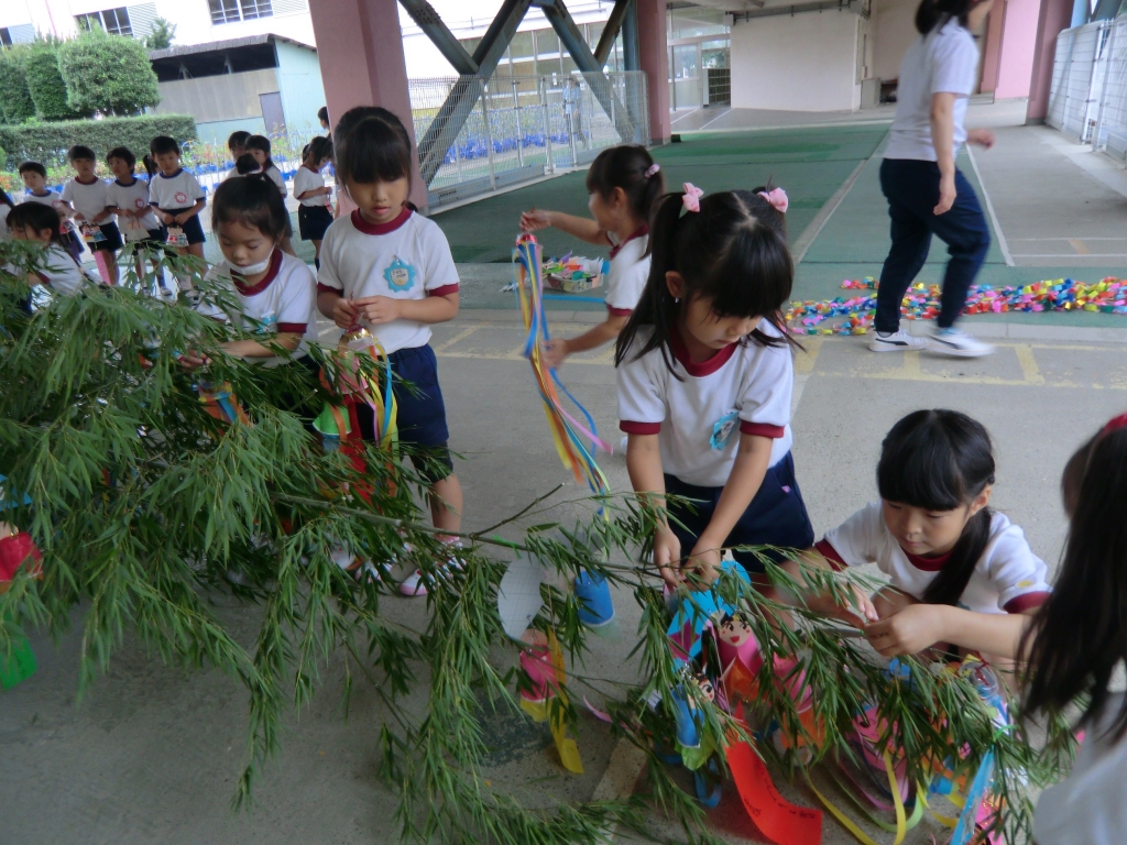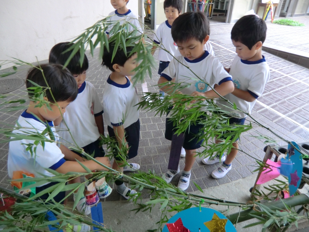 7月7日の七夕まつりに向けて、クラスごとにいろいろな笹飾りを作りました。