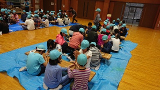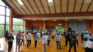 大雨の中出発した林間学校ですが、室内でクラフト体験やレクをしてみんなで楽しんでいます。