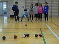 赤・青それぞれ6球ずつのボールを投げたり、転がしたり、