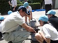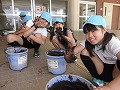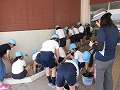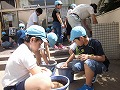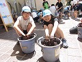 今日は、育てた苗をバケツに植える「田植え」をします。