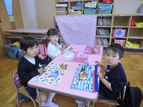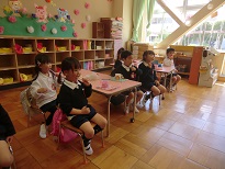 朝から、「今日はなんのパンかな。」「パンをいっぱい食べるんだ!」と、張り切っている子、「今日はお迎え遅いの?」と、14時降園にドキドキしている子など、いろいろな姿が見られました。