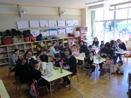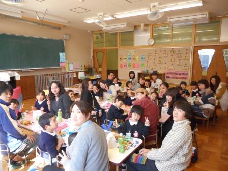その後は、小学校の栄養士の原先生から食べ物の栄養のお話を聞き、親子仲良くお楽しみ会食。とても楽しそうな親子の姿が見れました!