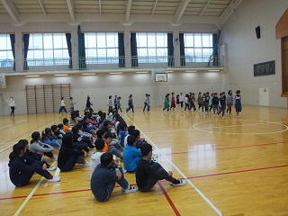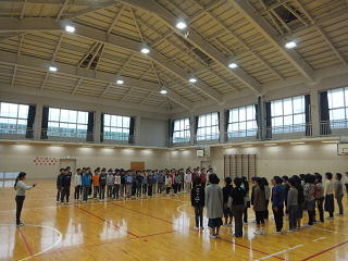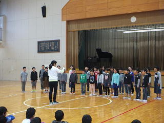 今朝は、10月24日に深谷市内小学校音楽会に参加する4年1組を学年全員で応援するために、朝の時間を使って学年壮行会を開きました。