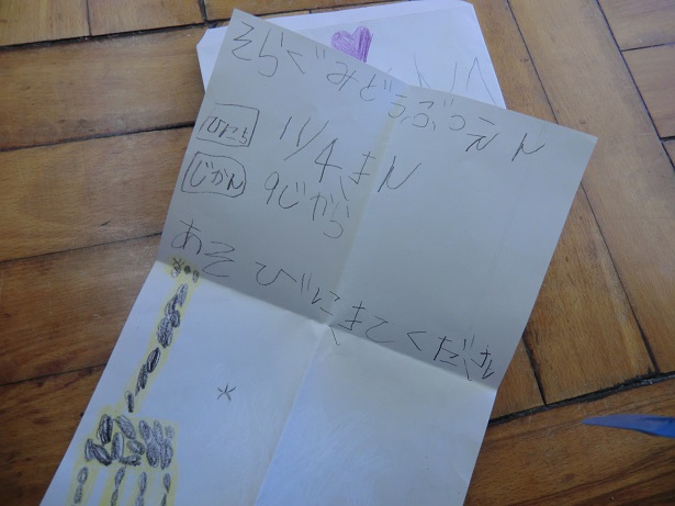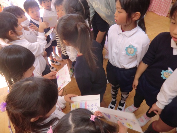 今日は年長さんが年中さんに素敵な招待状を届けてくれました。