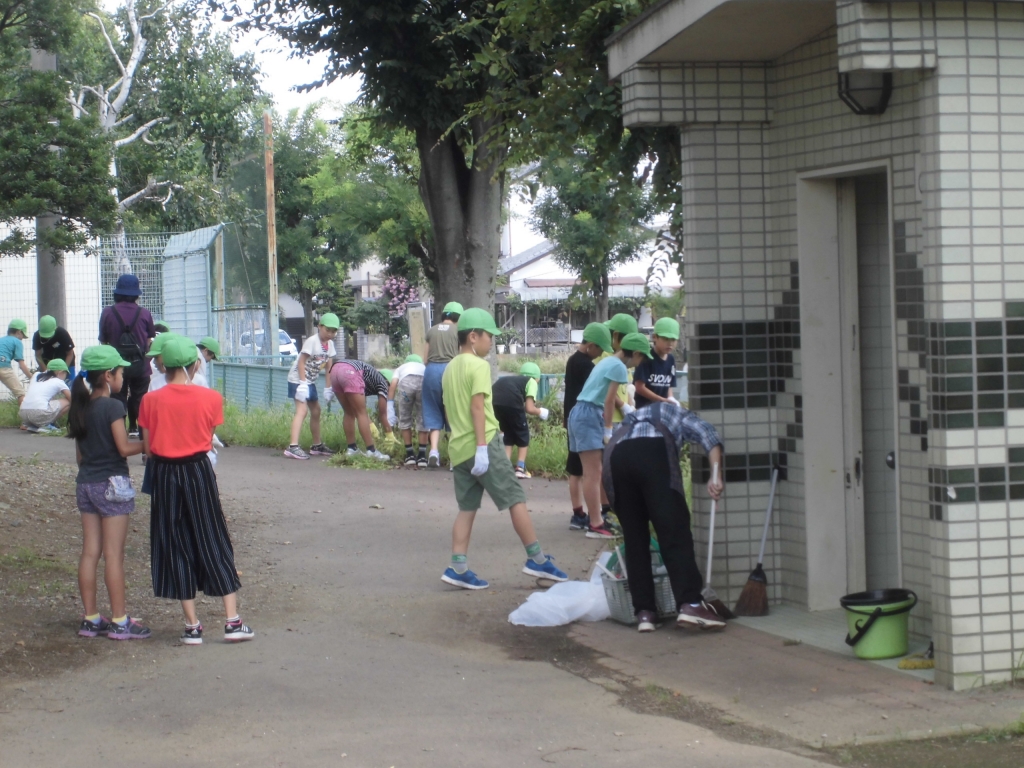 今日、5年生が東方公園の除草や落ち葉掃き、ごみ拾いを行いました。暑い中でしたが、もくもくと作業を行い、あっという間に公園をきれいにすることができました。さすが、5年生!!