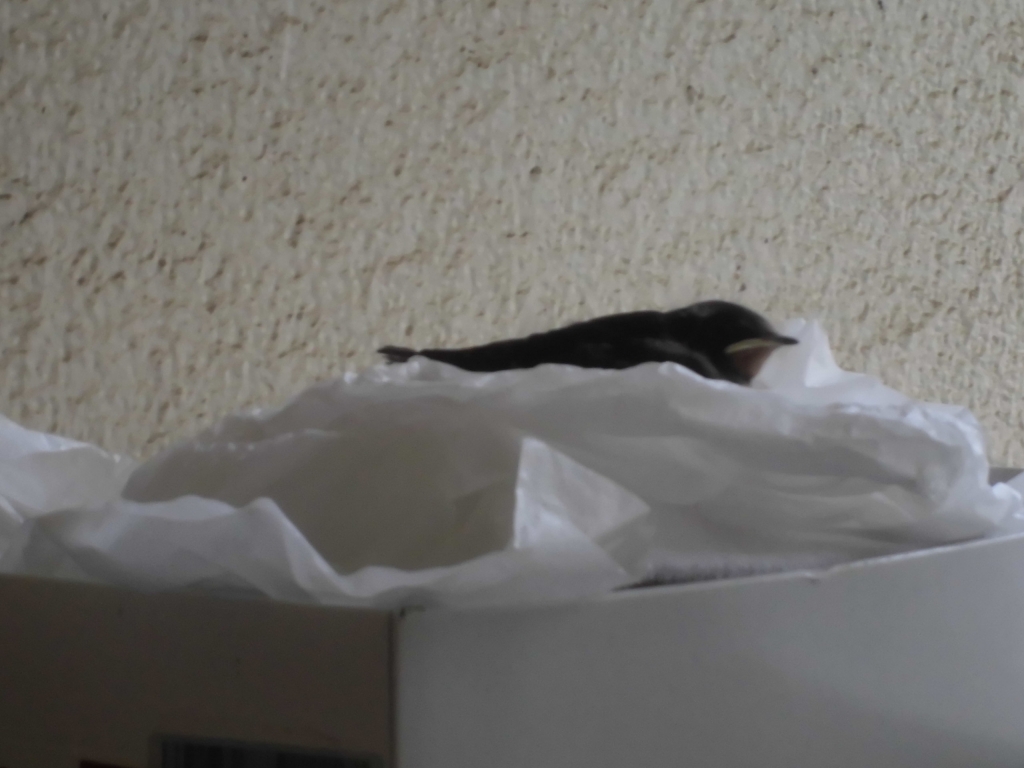 そこで下駄箱の上に別荘を作り、引越をしてあげました。(7/7)。親鳥からえさをもらえなくなるのではと心配しましたが、きちんとえさをもらうこできました。