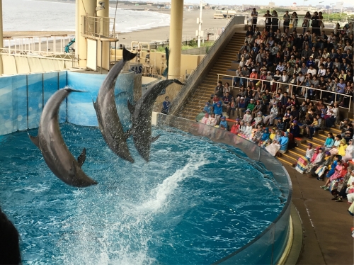 水族館でイルカショーを見ました。イルカやアシカたちの技に子供たちは大感動でした。