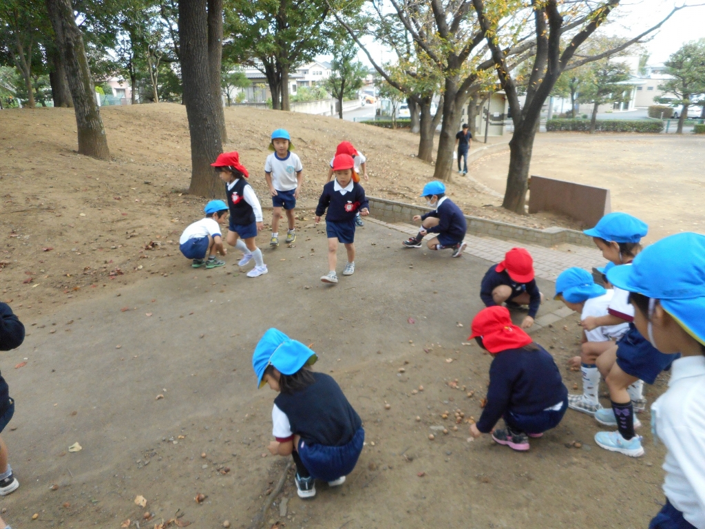 と、幼稚園にあるドングリとの違いに気づき、面白がっていました。