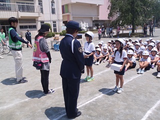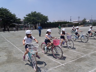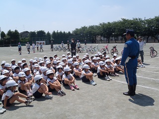 今日は、交通安全教室でした。3年生は、安全な自転車の乗り方を警察の方、市役所の方に教えてもらいました。