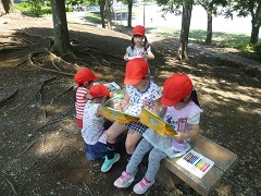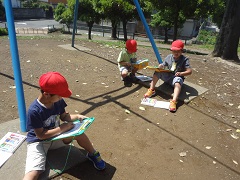 公園で見つけたものを描いたり、