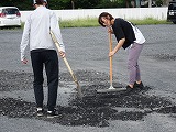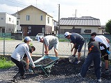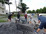 夏季休業になり第1日目は全職員で備品整備や校地内の整備を行いました。不要物を片付け整備したことで、使用しやすいように整いました。雨が降るたび、水たまりに悩まされていた職員駐車場も、砂利をいれ整えることができました。