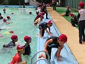 着衣泳は本校では初めての取組です。