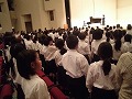 歌う前の表情は固く、緊張した様子でした。