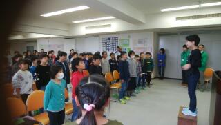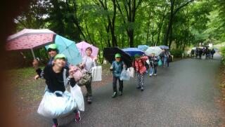 山道を登り本館へ着きました。校歌をしっかりと披露し、所長さんの話も立派な態度で聞いていました。