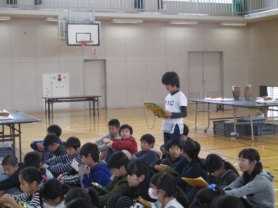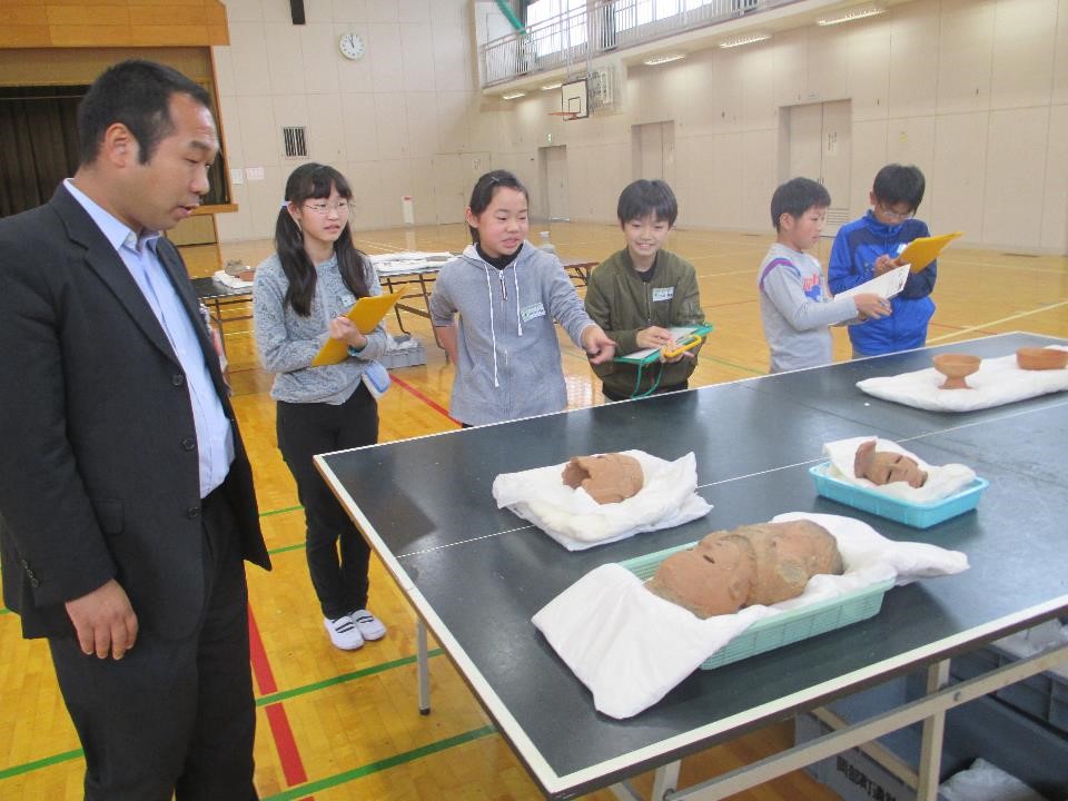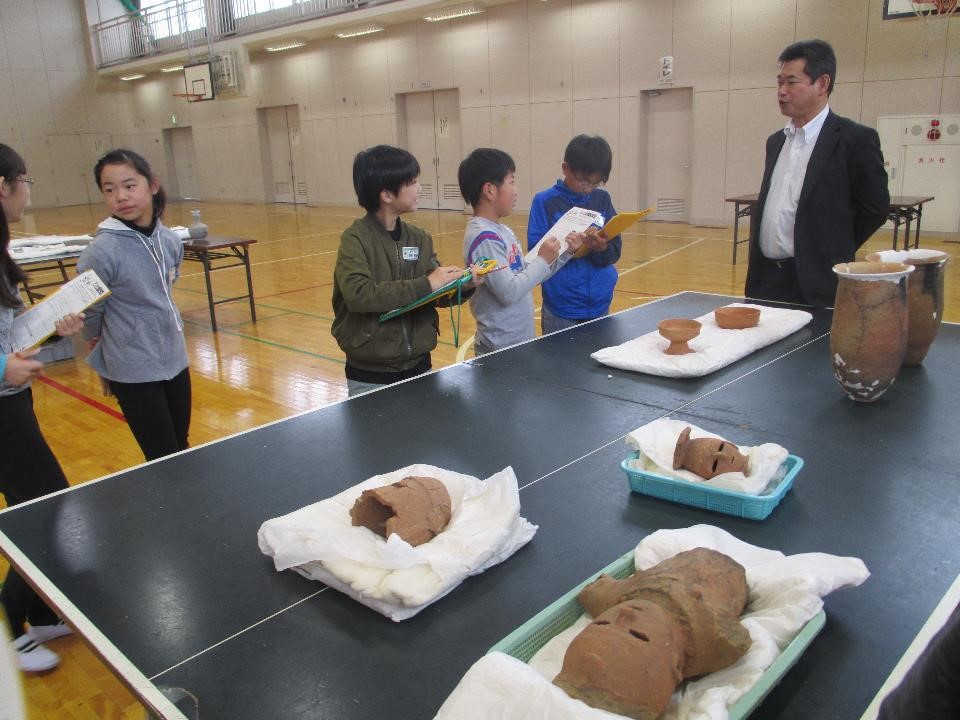 深谷市教育委員会様から2名の講師を招いて、6年生の歴史に関する土器を見学しました。実物を見たり、触れたりとなかなかできない貴重な経験ができました。社会の学習に生かしたいと思います。また、今回は幡羅小学区にある幡羅遺跡から出土した土器も持ってきていただき、見学させていただきました。