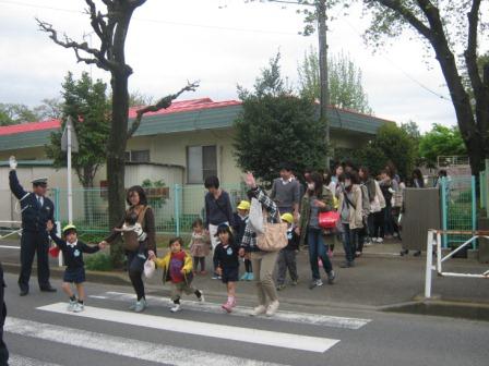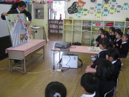 では、ビデオを見たり保護者の方と一緒に手を繋いで横断歩道を渡る練習をしました。