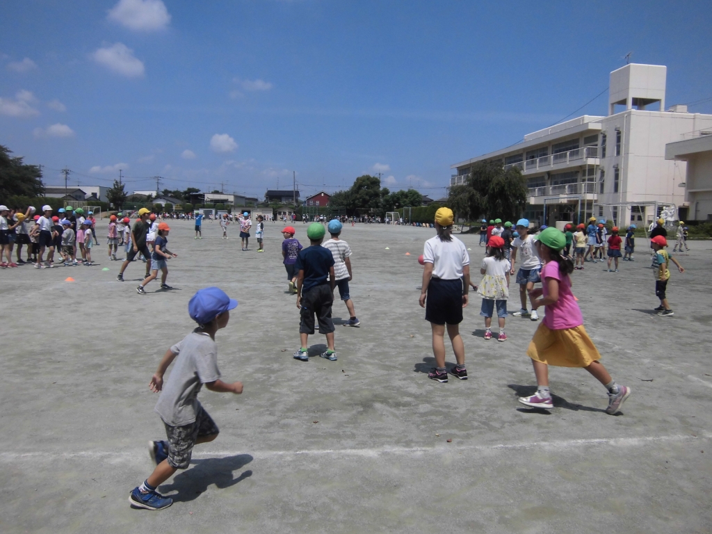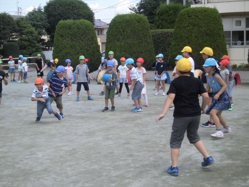 転がしドッジボールをしたり、おにごっこをしたり、各班ごとに楽しく遊ぶことができました。