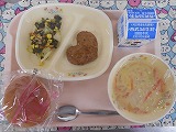 2月26日(木) 牛乳 ハンバーガー ほうれん草とコーンのソテー 冬野菜のクリームシチュー 今日の給食に出ているハンバーグは ハートの形です。(o^―^o) 2月のバレンタイン 3月のホワイトデーにちなんだ 献立です。 給食を残さず食べて好きな食べ物への 感謝の気持ちを伝えましょう。  |