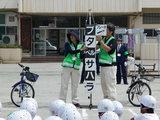 交通安全教室で、安全な自転車の乗り方について学習しました。