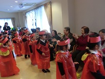 園児が、歌と踊りを披露すると大変喜んでくださいました。