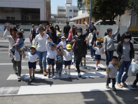 右左右を見て右手を挙げて上手に渡れましたね!!