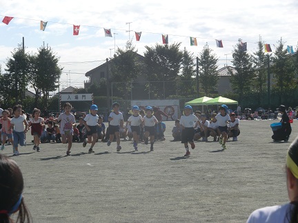 来年一年生になる年長組はかけっこに参加し、校庭の真ん中を、元気に走りました。