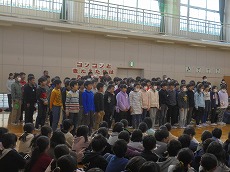 学年毎にパートに分かれて順におおきな声で暗唱しました。