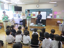 深谷市役所の方々、深谷警察署の方々に来ていただき、親と子の交通安全クラブ結成式、交通安全教室を行いました。