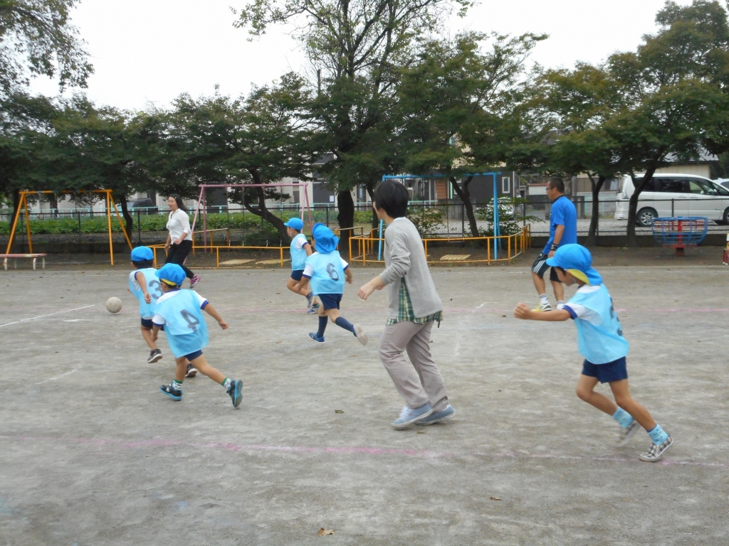 年中組は初めてのサッカー遊びでした。