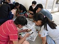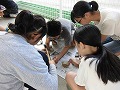 今日は、理科支援員の柳先生と一緒に地層の学習をしました。